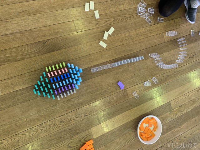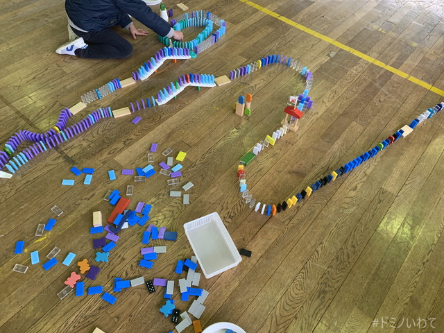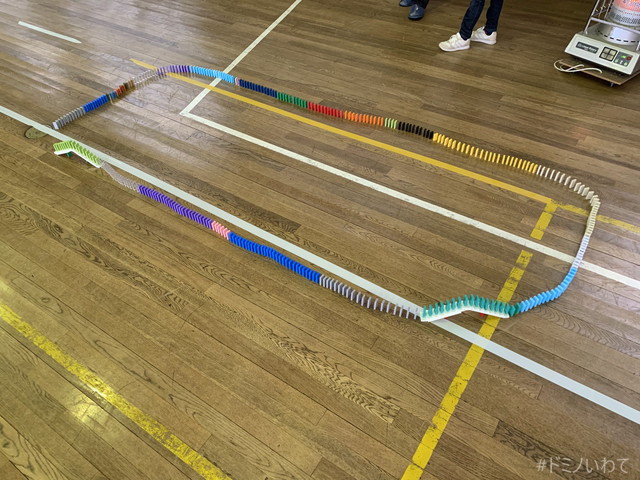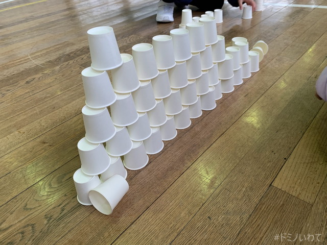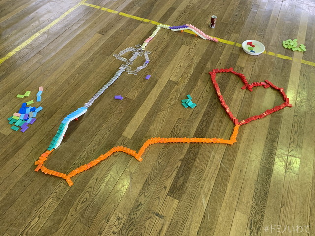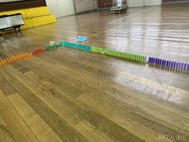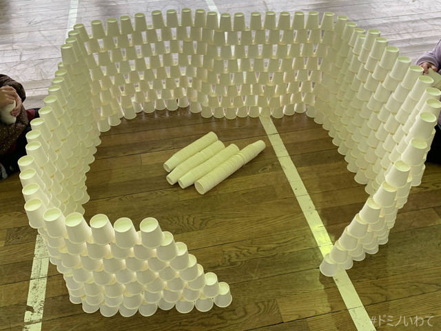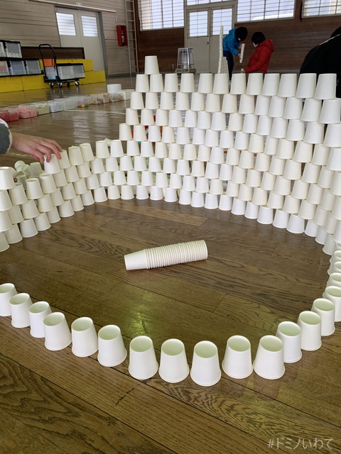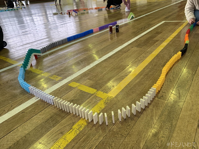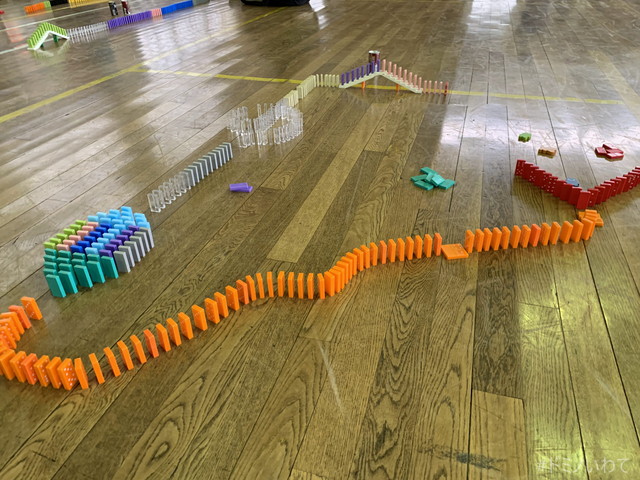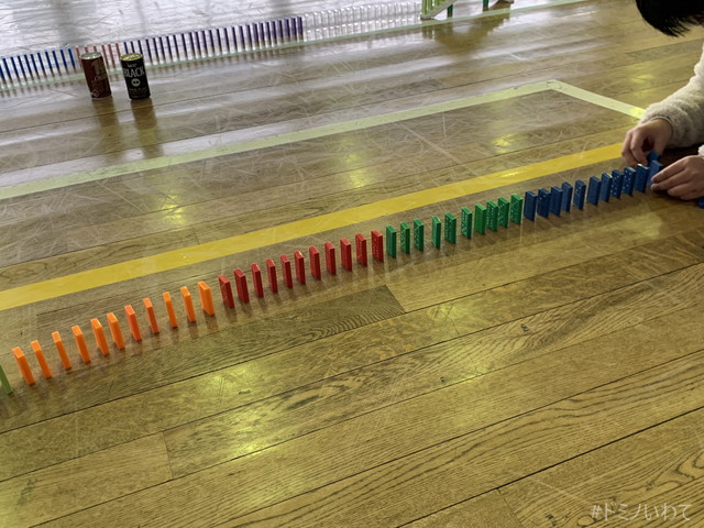 少し寒いですが・・、見前小学校の体育館をお借りしてのドミノ。