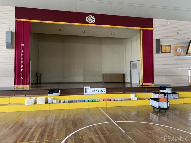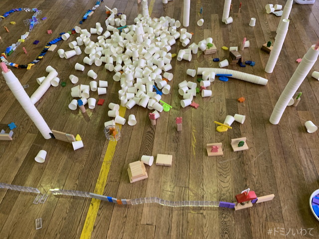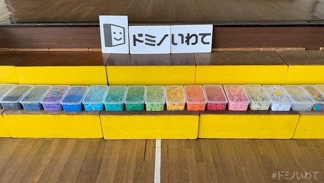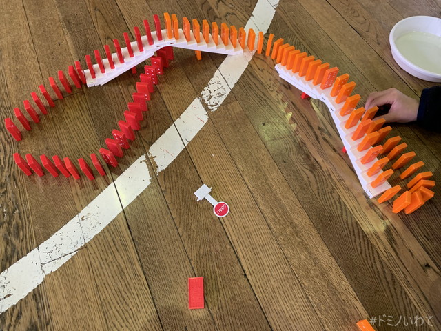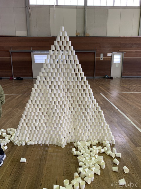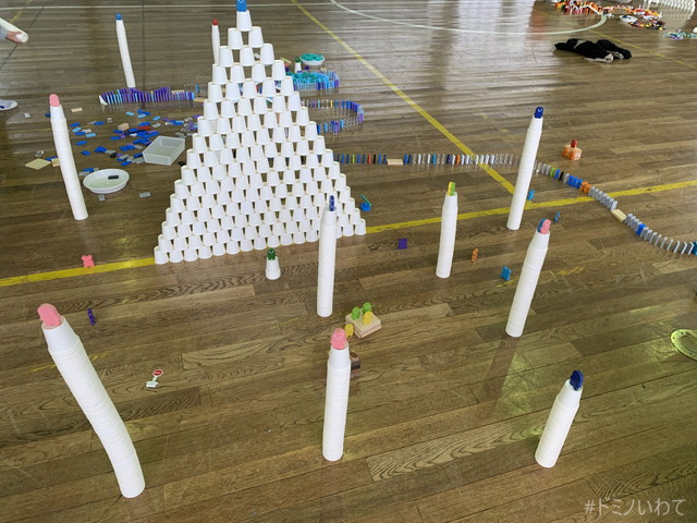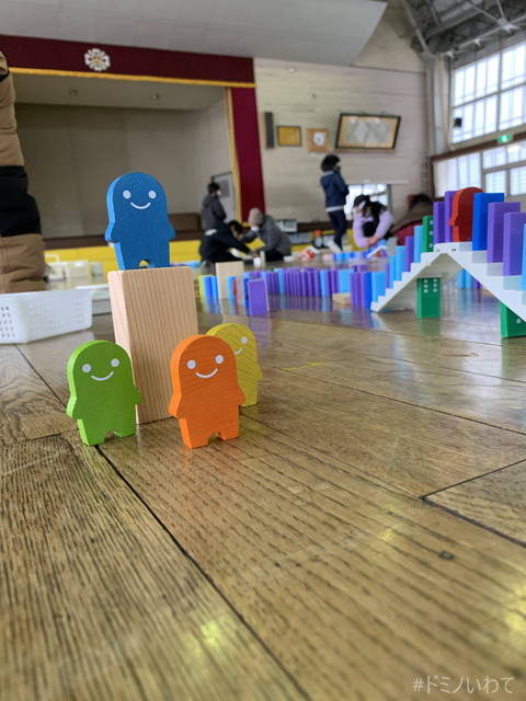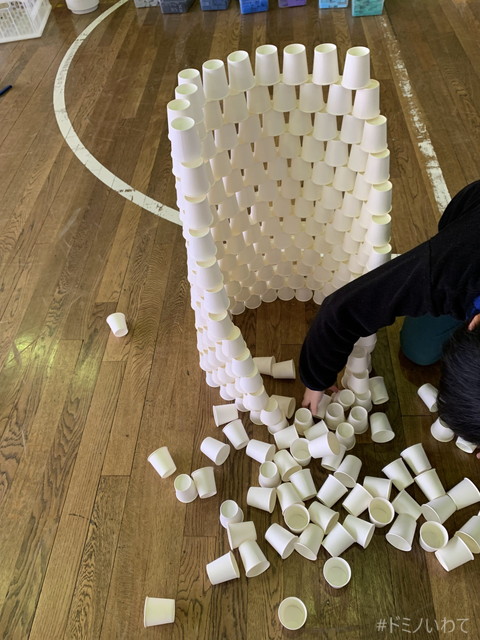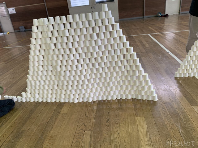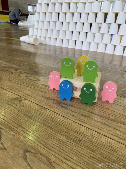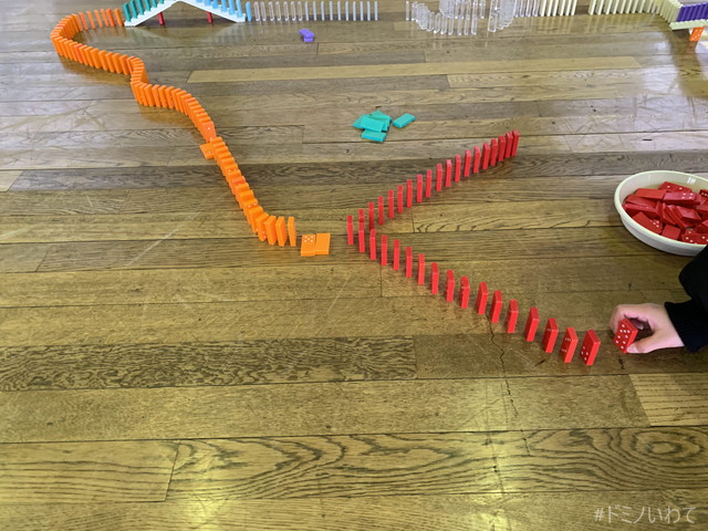 少し寒いですが・・、見前小学校の体育館をお借りしてのドミノ。